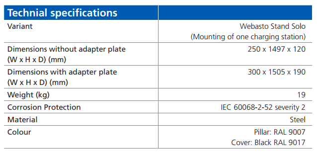 The Webasto Stand Solo is designed for mounting a single Webasto charging station.