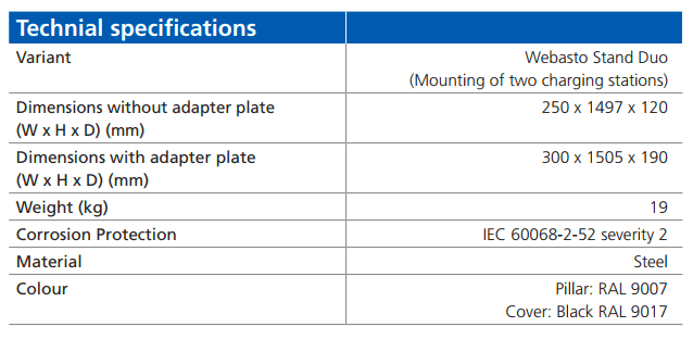 The Webasto Stand Duo is designed for mounting two Webasto charging stations.